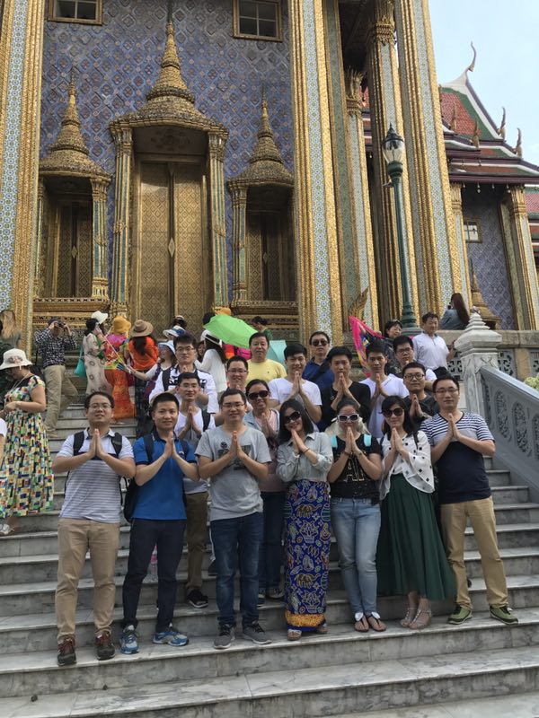 這幾日藍眼科技團隊先后游覽了大皇宮、玉佛寺、水上市場綿陽牧場、珊瑚島、月光島、莎美珊公主島、四面佛、熱帶水果園,觀看泰國特有的人妖歌舞秀等風景名勝。其中,大皇宮是結合了泰、中、西藝術風格,而玉佛寺則是廟群龐大,只能用金壁輝煌來形容,壁畫的數(shù)量也令人嘆為觀止,還有嫵媚妖嬈的人妖歌舞秀等等,讓我們度過了一段多姿多彩的泰國之旅。