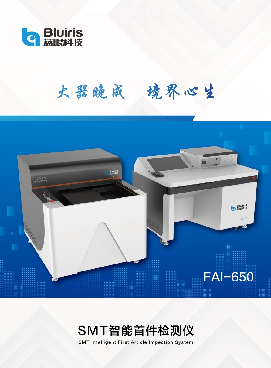 當今SMT電子工廠,多機種、小批量、換線頻,使得首件檢測的任務(wù)越發(fā)繁重。傳統(tǒng)的SMT首件檢測方法,不僅浪費人力,效率低下,整個首件檢測過程缺乏管控,品質(zhì)難以得到保證。針對此難題,深圳市藍眼科技有限公司首創(chuàng)了SMT首件檢測儀,通過不斷升級優(yōu)化,現(xiàn)已研發(fā)出第四代首件檢測儀FAI-650,具有以下顯著優(yōu)勢: